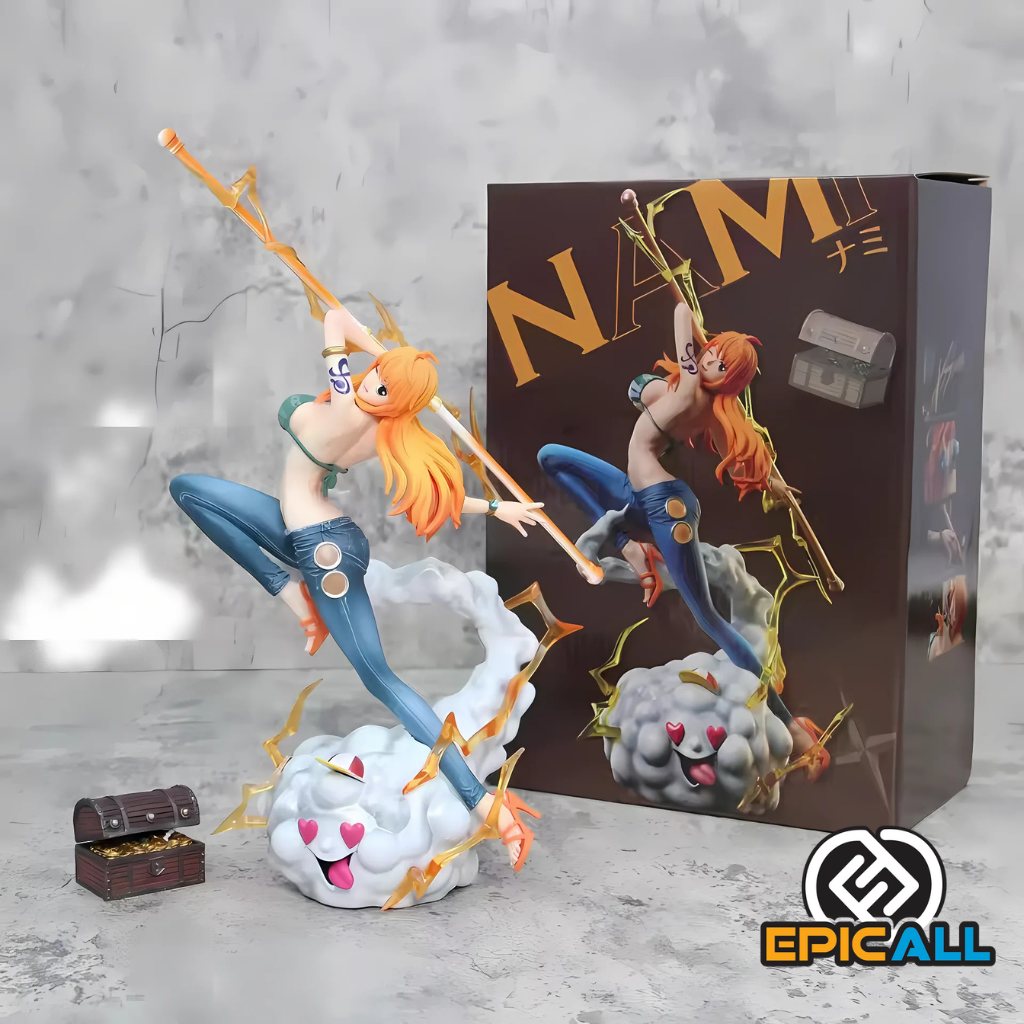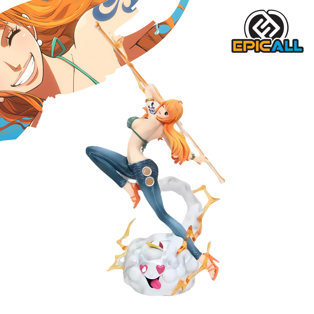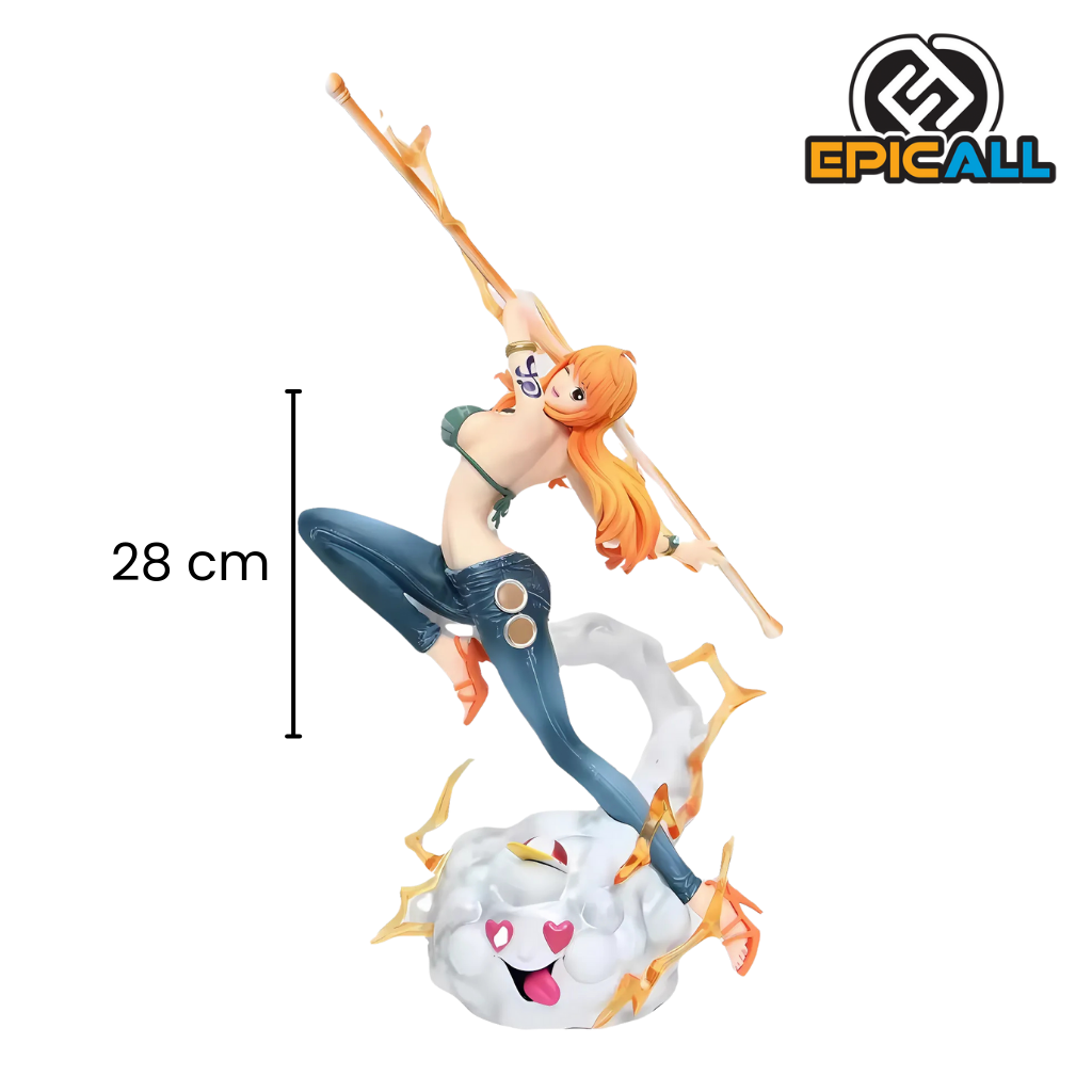 Embárcate en una aventura épica con la figura de Nami, la talentosa navegadora de los Piratas del Sombrero de Paja. Esta figura de alta calidad captura la belleza y el poder de Nami en su forma más icónica, junto a su fiel compañero Zeus. Con su bastón Clima-Tact y su pose dinámica, esta figura es perfecta para cualquier fan de One Piece.