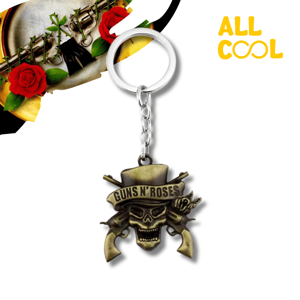 ¡Lleva contigo la leyenda del rock con este llavero de Guns N' Roses! Este llavero metálico presenta el icónico logo de la banda, con el cráneo y las pistolas cruzadas. Perfecto para los fans del rock y aquellos que buscan un accesorio con estilo.