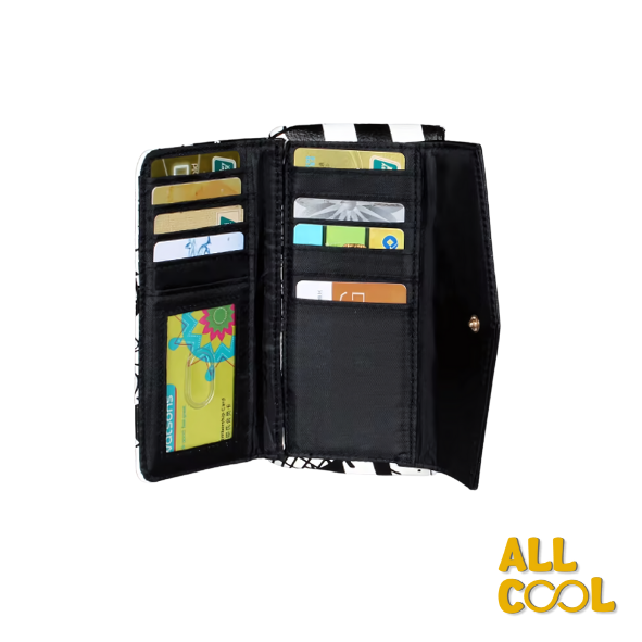 - Compartimentos para monedas, billetes y tarjetas
