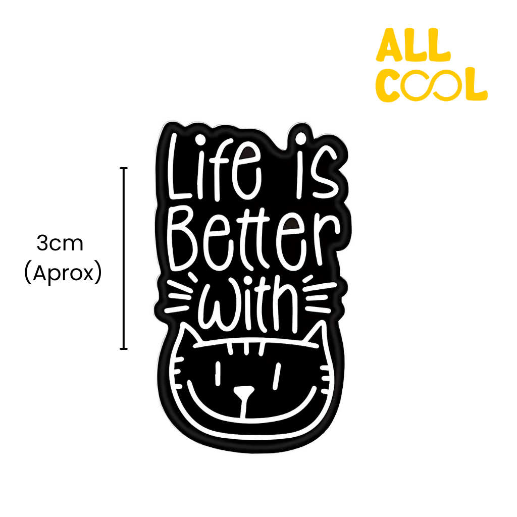 ¡Expresa tu amor por los gatos con este pin metálico único! Con la frase "Life Is Better With Cats", este pin es perfecto para los amantes de los felinos. Ideal para decorar tu mochila, chaqueta o cualquier otra cosa que se te ocurra.