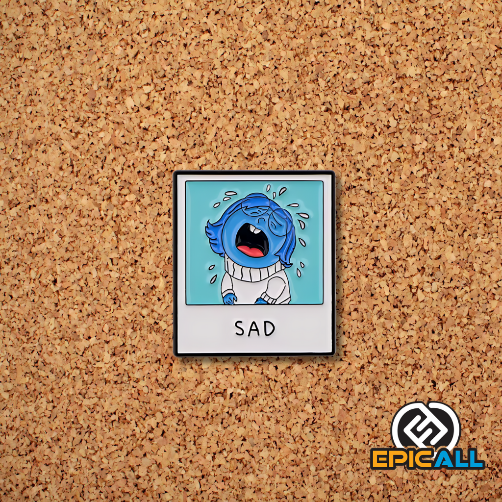 ¡Siente la tristeza en todo su esplendor! Este pin metálico presenta un diseño detallado y colorido de Tristeza, el personaje de Intensamente. Perfecto para los fans que buscan un accesorio único y original.